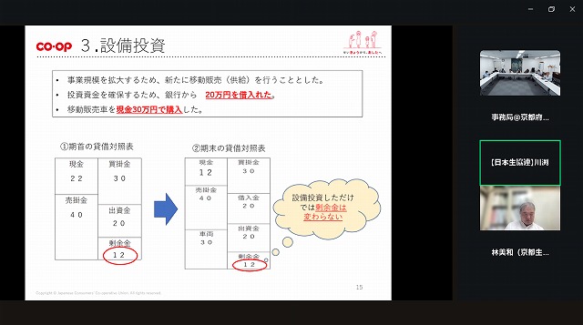 講師は日本生協連管理本部経理部・川渕笑子氏。決算関係書類の見方を理解し、経営分析の手法について学び、理事会での経営報告への理解力を高めることを目的に開催しました。講師含め23人の役職員が参加しました。
